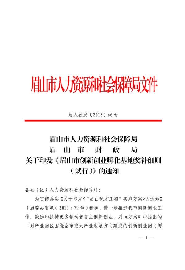 眉山市創(chuàng)新創(chuàng)業(yè)孵化基地獎補細則(試行)